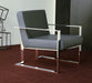 Gray Leatherette and Polished Stainless Steel Lounge Chair