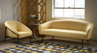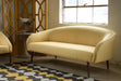 Yellow Woven Barrel Sofa with Walnut Legs